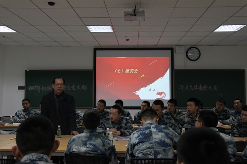 研究生院a102教室召开2017年度民主座谈会,让党支部同志们对自己以及党支部进行年度总结评议。机械院党委副书记易洪波同志和机械院国防生党支部指导老师魏莉老师也参与了此次座谈会。
