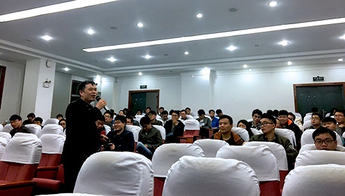 讲座主要包括段辉高教授演讲和有奖问答两部分。首先段辉高教授从他的研究课题入手,为我们概括性的介绍了电子束纳米加工及应用技术的研究背景,该方向的优势,应用以及发展前景;同时细致地讲解了近年主要研究工作与代表性成果,极小尺度/极高精度电子束纳米加工、机理、工艺、应用。接着段辉高教授同我们介绍了他的科研思路,以高端装备中的“光机电系统”微型化和高性能化为核心研究目标,开发极端微纳制造新原理、新方法、新工艺,致力于系列特种光声电元器件加工。最后,段教授将他研究人员的科研选题经验传授给大家,将他的一些学习上的方法和建议分享给了在座的同学,“探索与创新,基础与前沿;源头创新,颠覆性技术;找矿与挖矿,交叉与跨界”。在段教授演讲结束之后,他对同学们的问题进行了耐心的解答,现场气氛非常活跃,主办方对踊跃提问的同学们送出了笔记本作为鼓励。