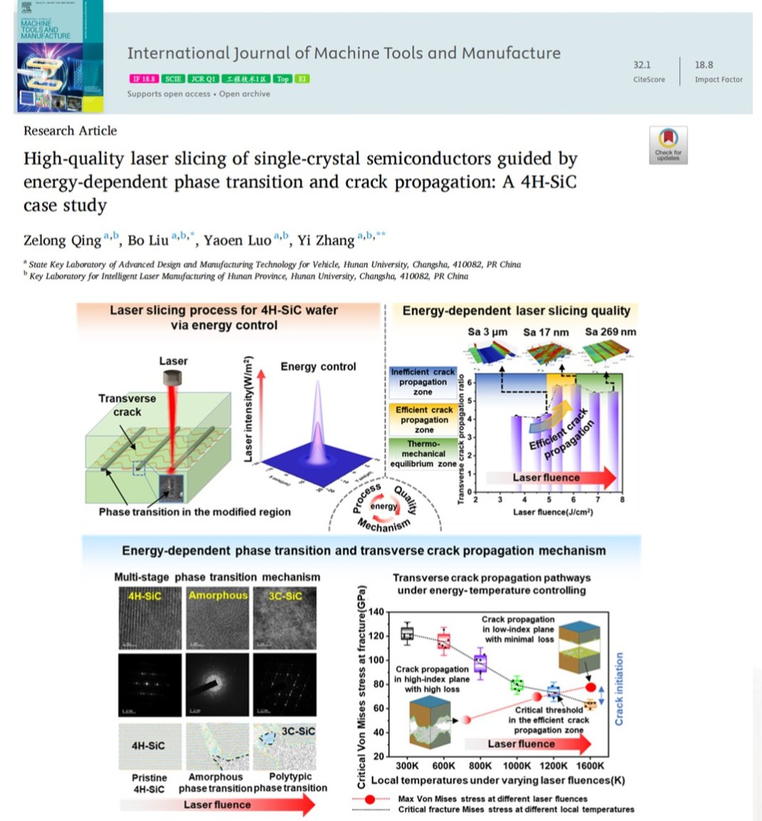 研究成果以“High-quality laser slicing of single-crystal semiconductors guided by energy-dependent phase transition and crack propagation: A 4H-SiC case study”为题发表在机械制造权威学术期刊《国际机床与制造杂志》(International Journal of Machine Tools and Manufacture)2026年第215卷上。博彩平台